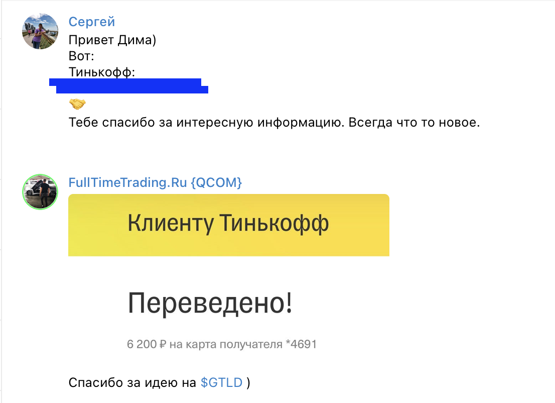Если вы заработали на идее того или иного участника, вы можете отблагодарить его, заплатив 10% от прибыли. Ищите номер его карты на форуме